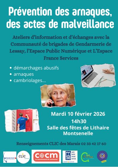Temps d’information “Prévention des arnaques”  à Montsenelle (salle de Lithaire) le mardi 10 février après midi.