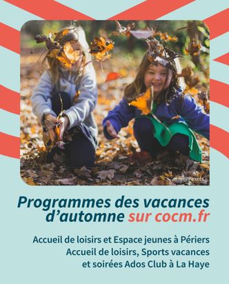 Vous trouverez ci-dessous les programmes des animations enfance-jeunesse et culturelles de la communauté de communes COCM pour les vacances d’automne 2025 : liens en bleu